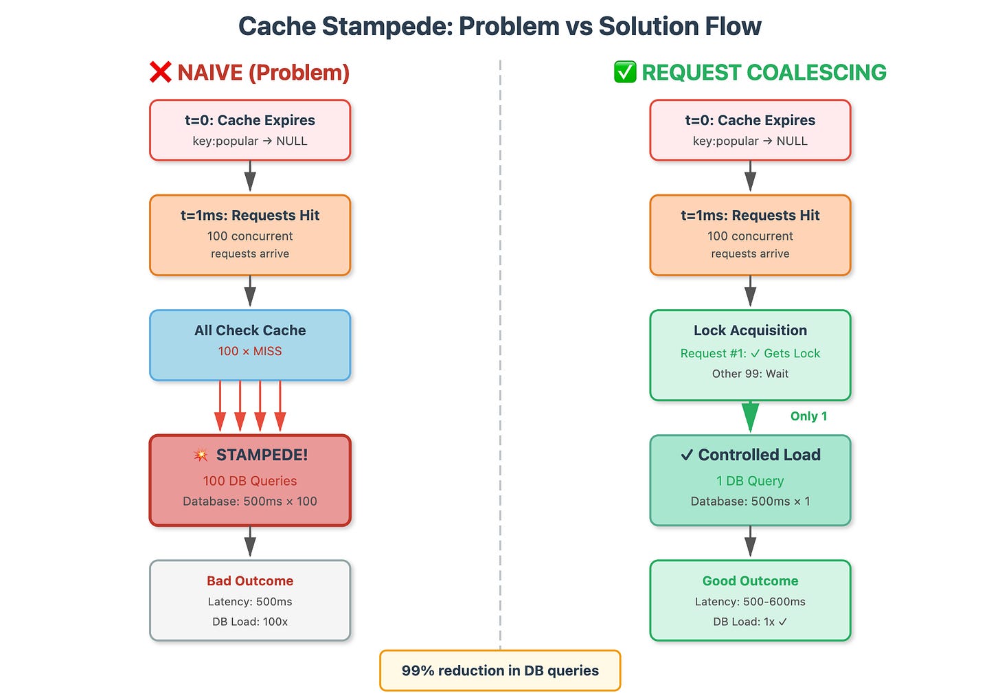 The ultimate lesson: cache stampede is a coordination problem, not a caching problem. You’re not trying to cache better—you’re trying to ensure only one request does the expensive work while everyone else waits or reads stale data. Master this pattern, and you’ve mastered one of the core challenges in building systems that serve millions.